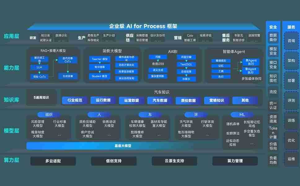 端到端的一站式AI工作空间深度融合了从企业战略规划到日常经营的全流程业务板块,,,,定向解决车企内部领域多、、、部门多、、链条长、、、、场景碎片化等难题,,,支持车企快速构建以AI为核心的生产力写作体系,,,,实现任务执行与AI能力的无缝集成与交互
